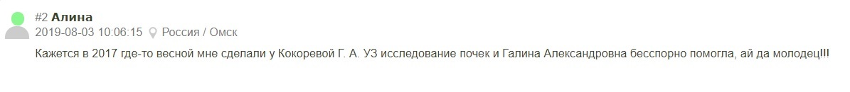 У Кокоревой Галины Александровны, как опытного врача с большим багажом знаний, вы можете получить консультацию относительно прогнозов и рисков предстоящего лечения. Для максимально точного диагноза вам потребуется сдать анализы, на основании которых уже можно подобрать курс процедур. Обладая высокими профессиональными навыками и необходимым опытом работы в этой сфере, она практикует как врач УЗИ.